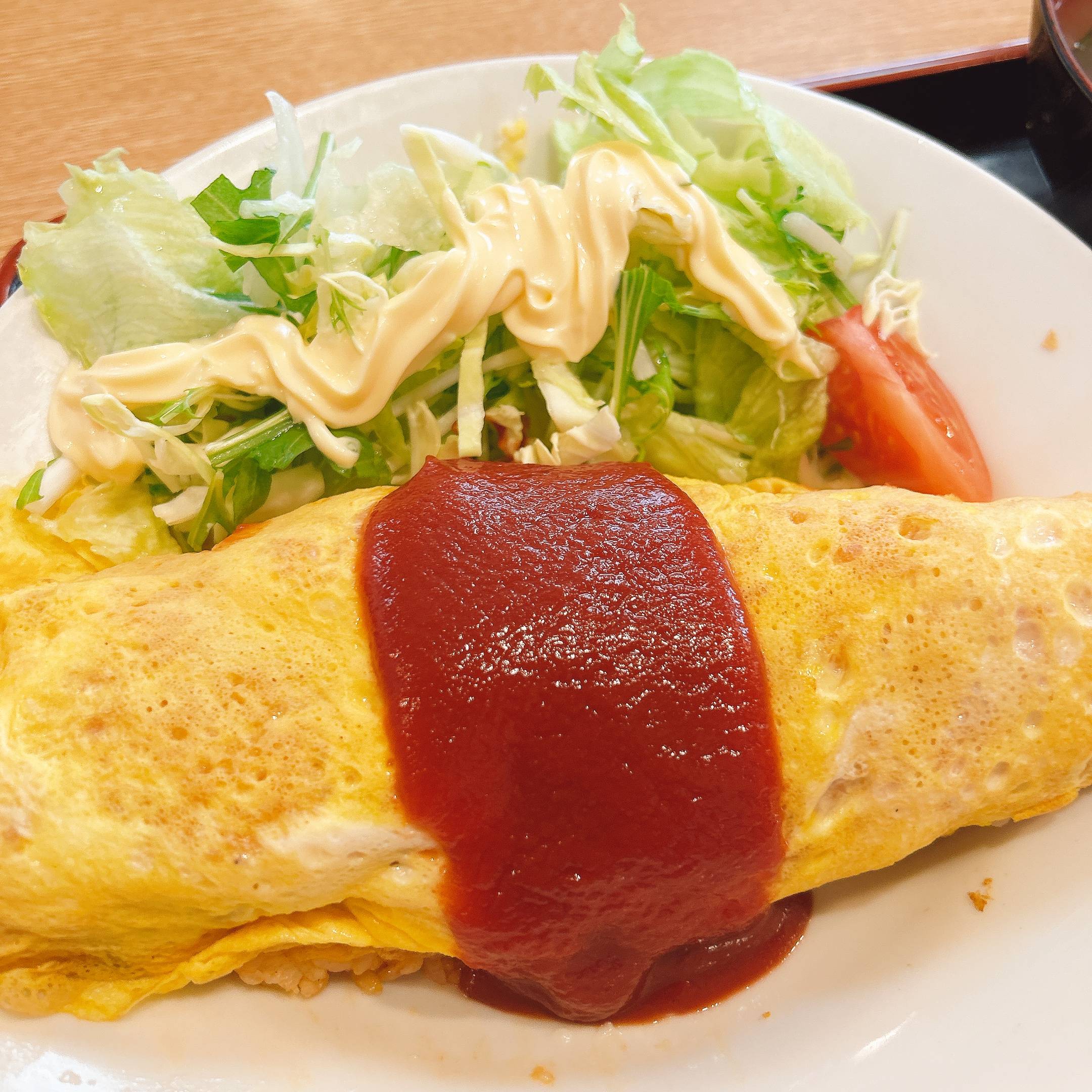 昭和のオムライスは薄い玉子焼きで裏までしっかり巻かれています。