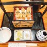 菜飯、煮物、茶わん蒸し、天ぷらにデザートの水ようかんが付いていてお膳が華やかです。