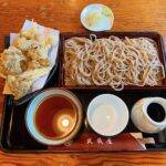 まぐろ山かけ、小海老の天ぷら、温泉玉子が乗った豪華なおそばです。