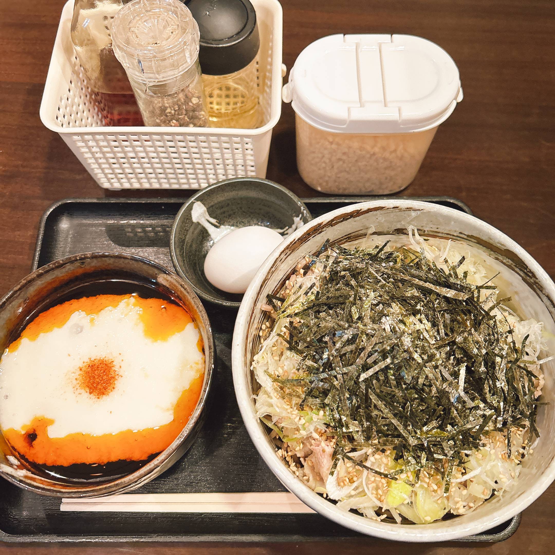 追加の調味料や揚げ玉もあって、味変に終わりがありません。