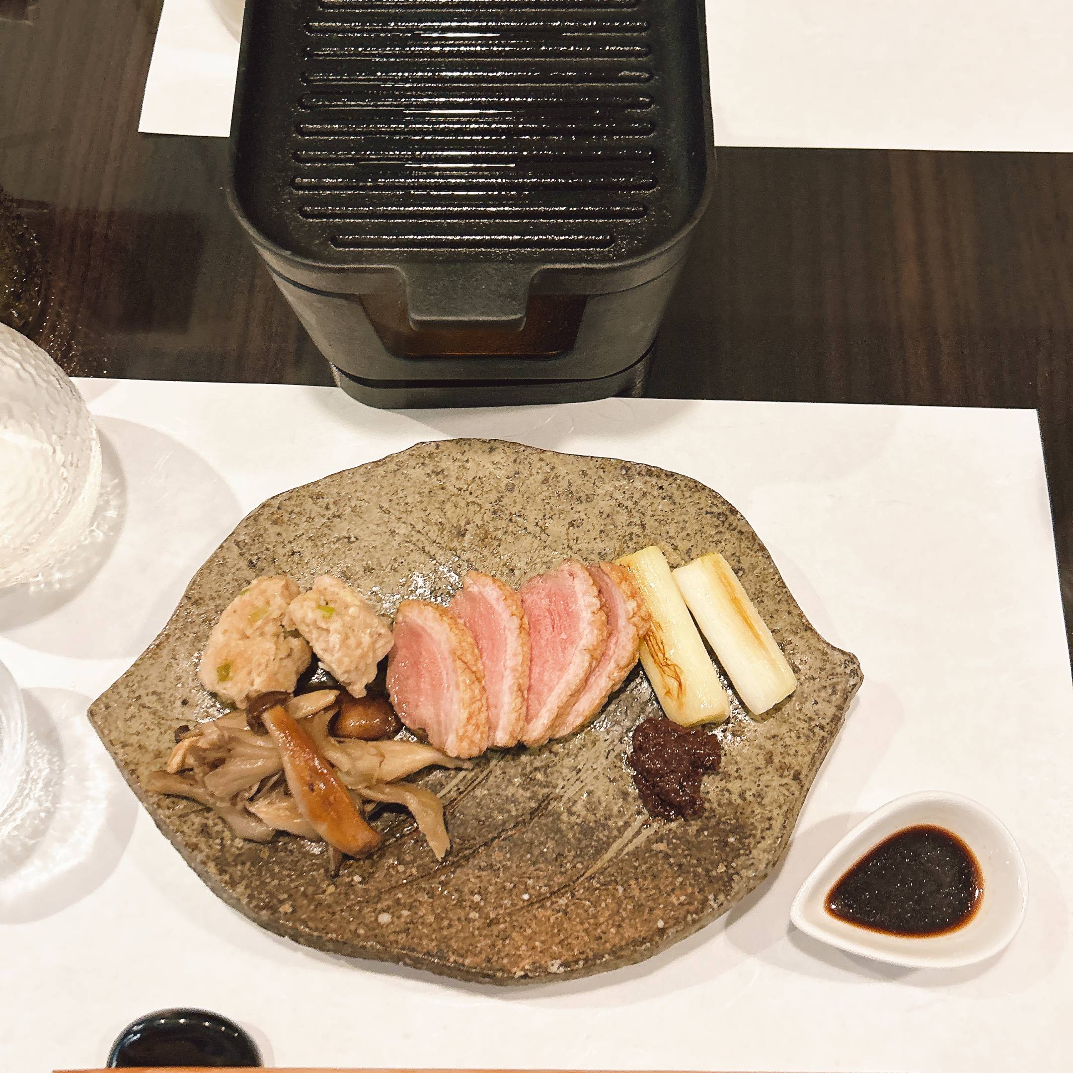鴨肉は事前に低温調理してありますが、最後の仕上げに鉄板で焼きます。