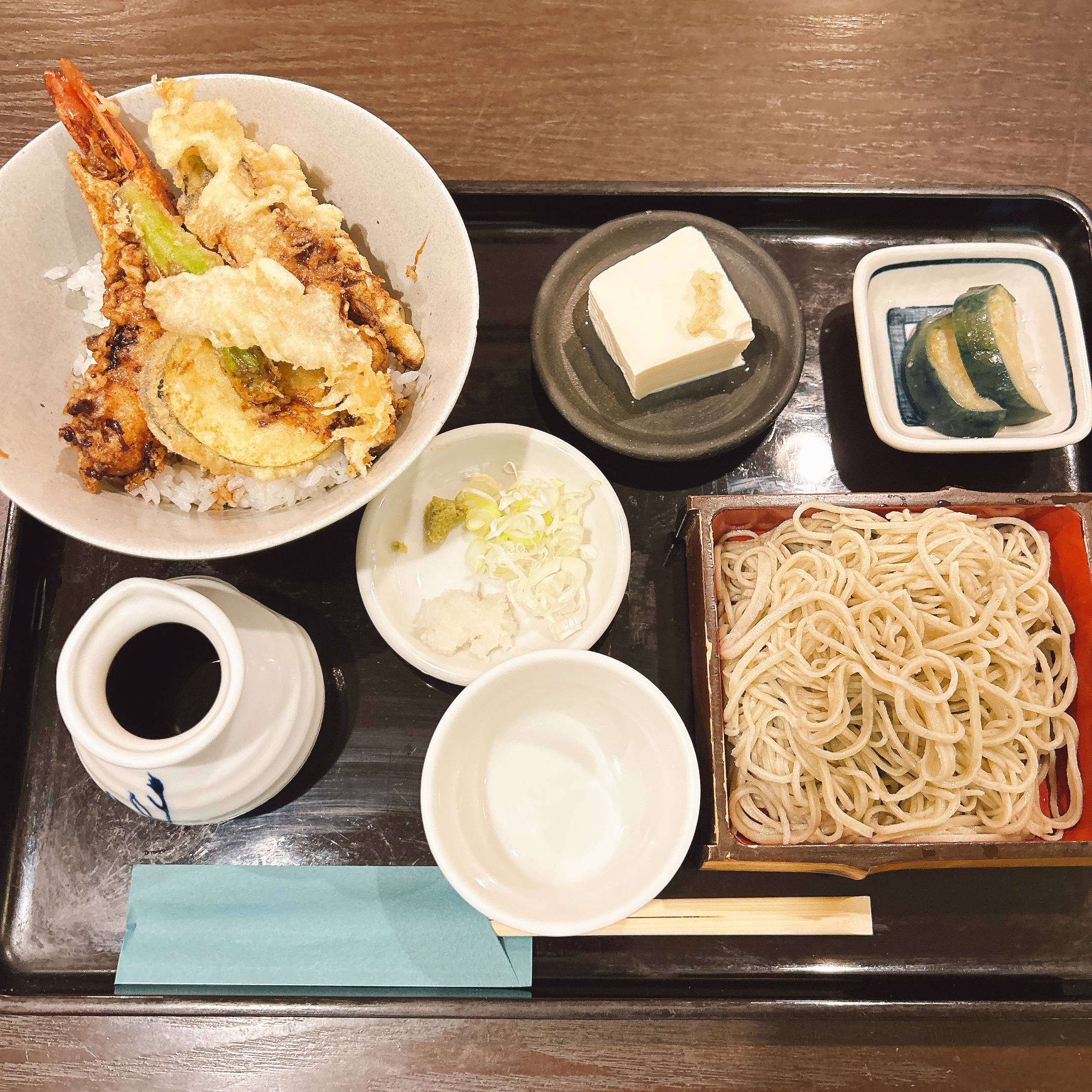 せいろそばと海老と野菜天丼という、定番の組み合わせ。