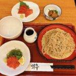 薬味に大根おろし、揚げ玉、白髪ねぎ、刻んだワサビの茎が入っています。